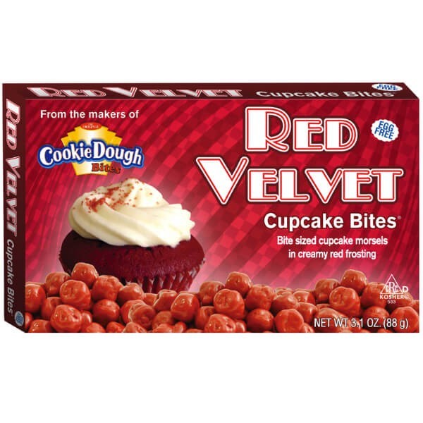 Det nyeste medlem af Cookie Dough Bites familien. Lækre mundfuldstore stykker cupcake dyppet i en cremet red velvet glasur. Hver lækker godbid smager som en red velvet cupcake.