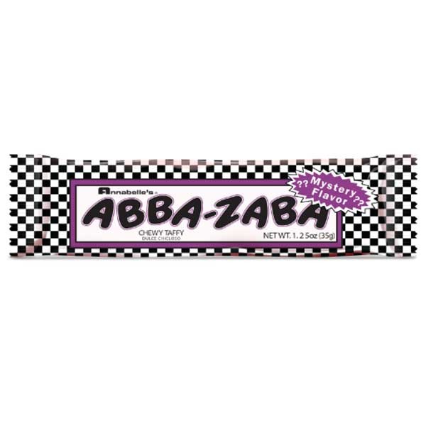 Abba-Zaba Msyery Flavor er en saftig taffy-bar med konstant forandrende smagsprofil. Disse barer af blød taffy er ufatteligt søde og henrivende tyggevenlige. Hver en mundfuld bliver fyldt med exceptionelle smagsoplevelser og blød taffy.