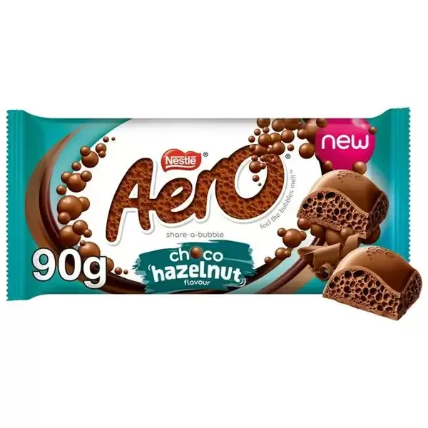Experience the irresistible taste of milk chocolate with a light, aerated centre infused with delicate hazelnut flavour. Made with our signature aerated chocolate, this unique bar melts effortlessly on your tongue, releasing every tiny bubble for a truly delightful taste sensation.