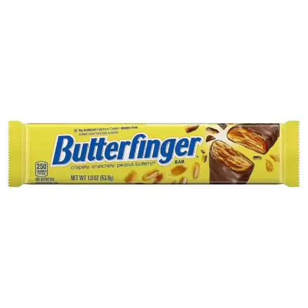 Butterfinger is the original bar that started it all. With its unique "crispety, crunchety" texture and peanut butter core covered in a rich chocolate coating made with cocoa, it has become a legend in the candy world.