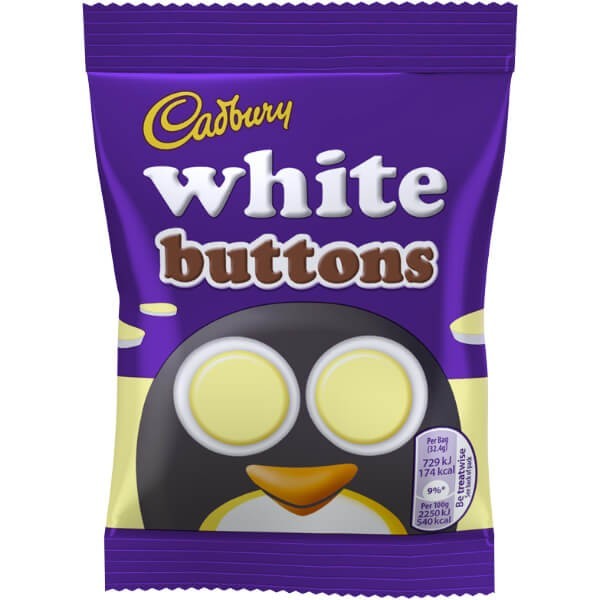 Cadburys White Buttons tilbyder et velanset alternativ til de mere traditionelle mælkechokoladeknapper. Disse smelter-i-munden lækkerier er dejlig glatte og cremede, og er perfekte at småspise til enhver tid