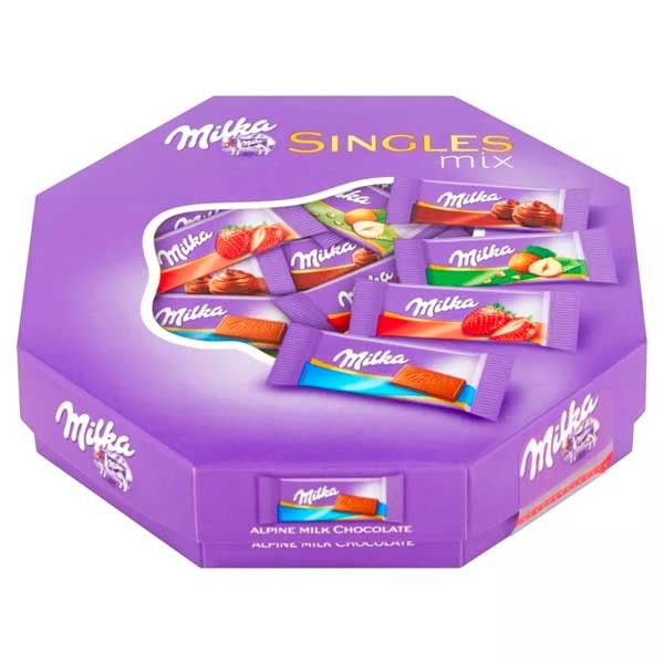 Dette velassorterede Singles Mix fra Milka indeholder en lækker række af enestående chokolader. Fra jordbær til hasselnød er disse chokolader bare lækre.