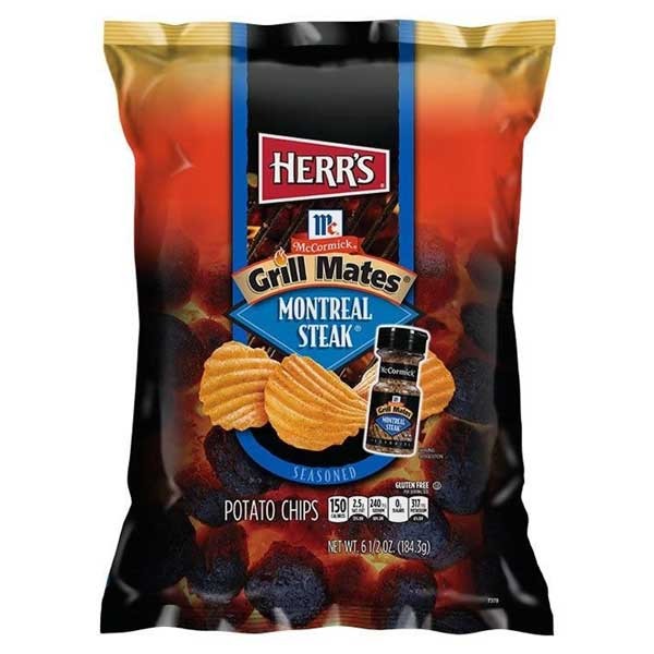Når to legendariske smagsvarianter støder sammen, så er resultatet et episk lækkeri til dig. Så da vi satte os for at indkapsle den autentiske smag af Montreal Steak, rettede vi opmærksomheden mod Grill Mates. Den ublu kombination af peber og hvidløg på grillet steak er perfekt sammensat til vores krusede chips. Hvis du er vild med den unikke smag af Grill Mates Montreal Steak, så vil du elske Herr’s Montreal Steak-chips.