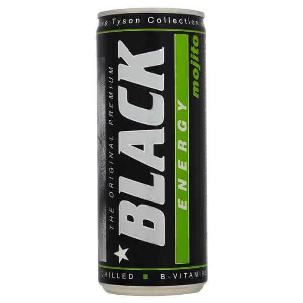 Forfriskende lime og pebermynte kombineret i en energicocktail og tilført taurin og koffein. Black Mojito er ikke kun perfekt på varme dage – den er uerstattelig, især når det er virkelig varmt...Et produkt med en særlig nærende effekt for folk, der er udsat for fysisk og mental anstrengelse. Den originale udgave med taurin, koffein og B-vitamin. Det er sådan Black virker!