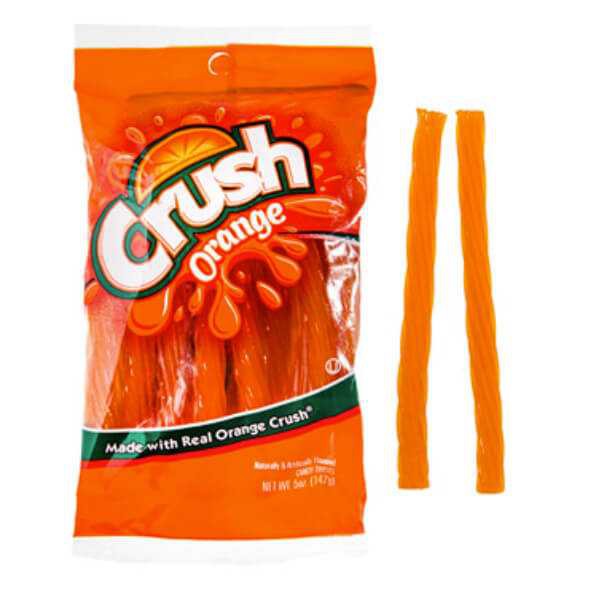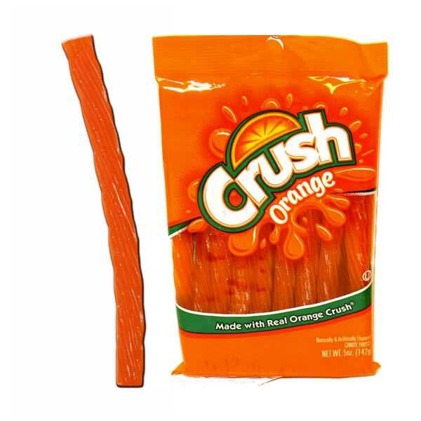 Denne lakridsstang med smag af Appelsin-Crush sodavand kombinerer det bedste af tre verdener: Sodavandssmag, lakridsstænger og vingummi – alt sammen blandet sammen til en stang. Helt vildt. Den lækre smag af Appelsin-Crush i en snoet, tyggevenlig lakridsstang! Lavet af ægte Appelsin-Crush, hvilket er det, som gør dem ekstra smagfulde og forfriskende!