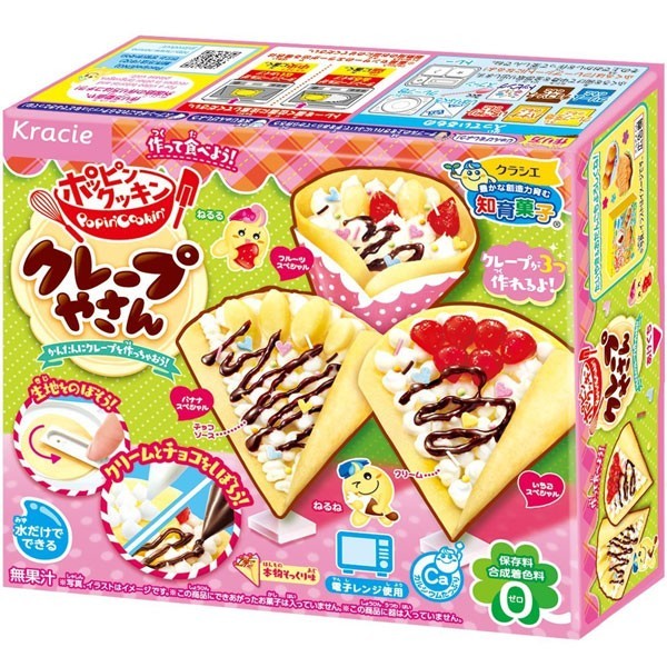 Et gør-det-selv-kit, så du kan lave dine egne pandekager, der ligner den ægte vare.• Med pulver og vand kan du lave dejen, fløden, jordbærsyltetøjet, banan og chokoladesauce.• Lav pandekagedejen i mikrobølgeovnen. • Klem fløden og dekorér med jordbærsyltetøj, chokoladesauce og toppings. • Rul pandekagen sammen, og den er færdig.