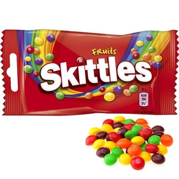 Skittles er på rekordtid blevet en utrolig populær tyggepastil herhjemme, hvor den nydes af unge og ældre. Skittles består af dragees med smag af forskellige frugter, der tager dine smagsløg med på en dejlig rejse. Tyggevenligt slik i en sprød sukkerskal med syrlig smag af frugt. Ikke to regnbuer er ens. Det samme gælder to pakker Skittles. Nyd et besynderligt mix.