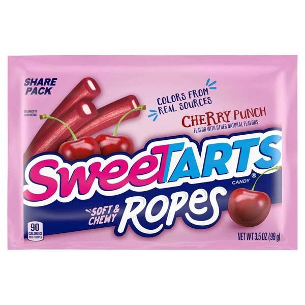 SweeTARTS Cherry Punch Soft og Chewy Ropes tager den klassiske smagskombination et skridt videre—ved at kreere bøjelig sjov, som både er konfekture samt SweeTARTS i en type slik. Tyggeslik med fyld af frugtpunch-smag. SweeTARTS Ropes eksploderer med en labyrint af tekstur, der får mundvandet til at løbe og en smag, der får slikelskere til at gå amok.