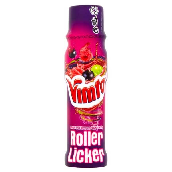Mixed fruit flavoured liquid candy made with the secret Vimto flavour. Vimto flavoured liquid candy with a roller ball dispenser. Made with natural colours and suitable for vegetarians, vegans and coeliacs. Ideal fun candy.